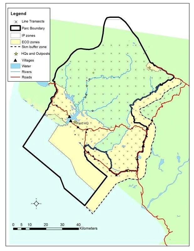 Baseline (2005) and repeat (2010, 2013) surveys, Conkouati-Douli NP